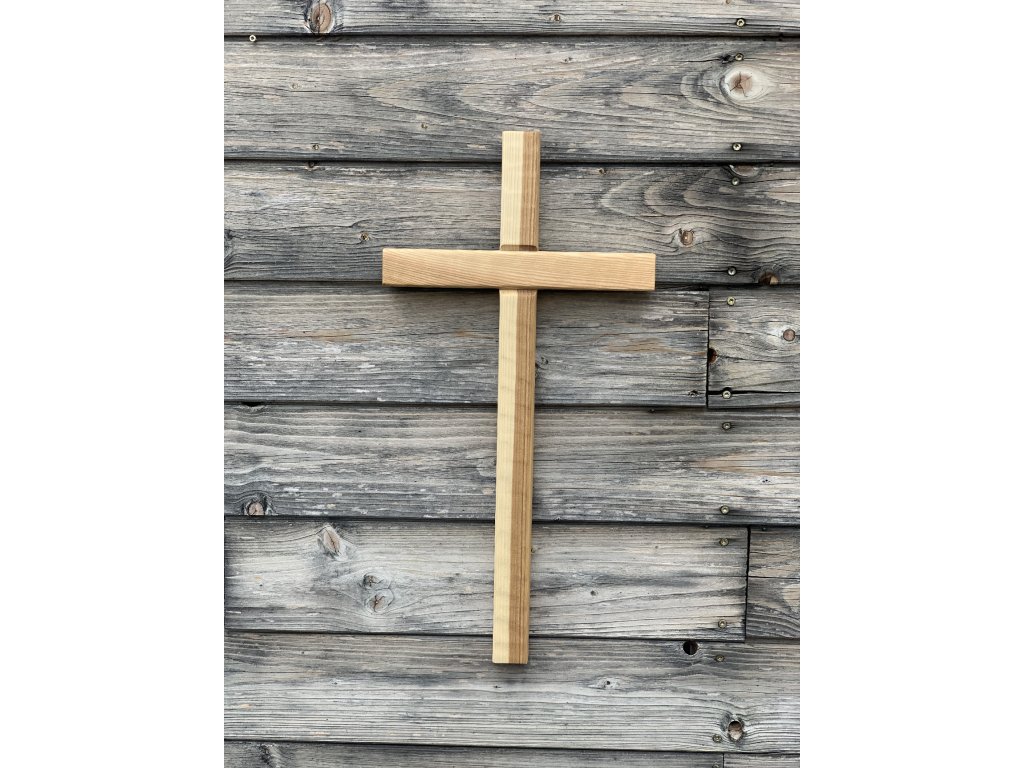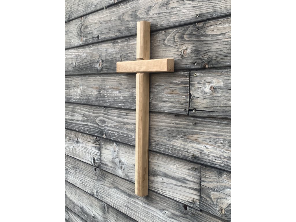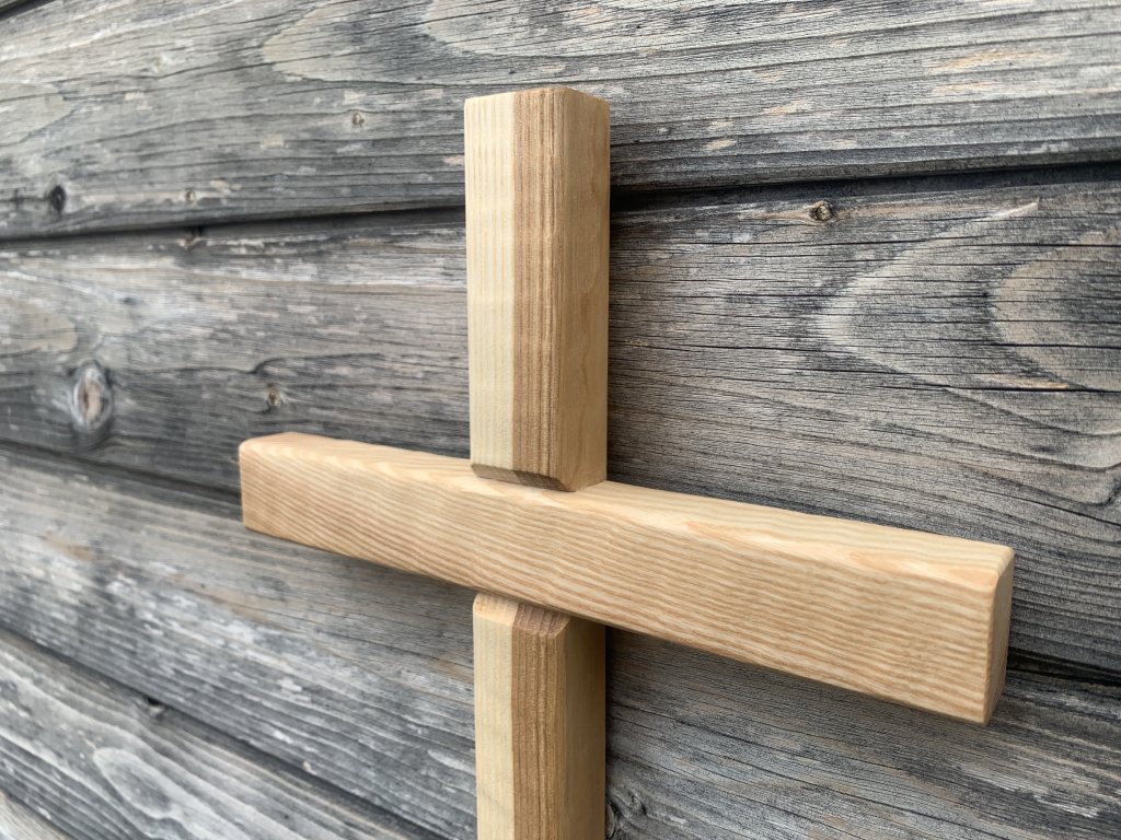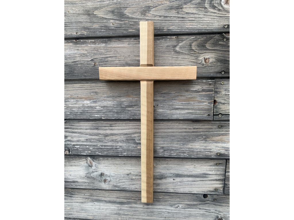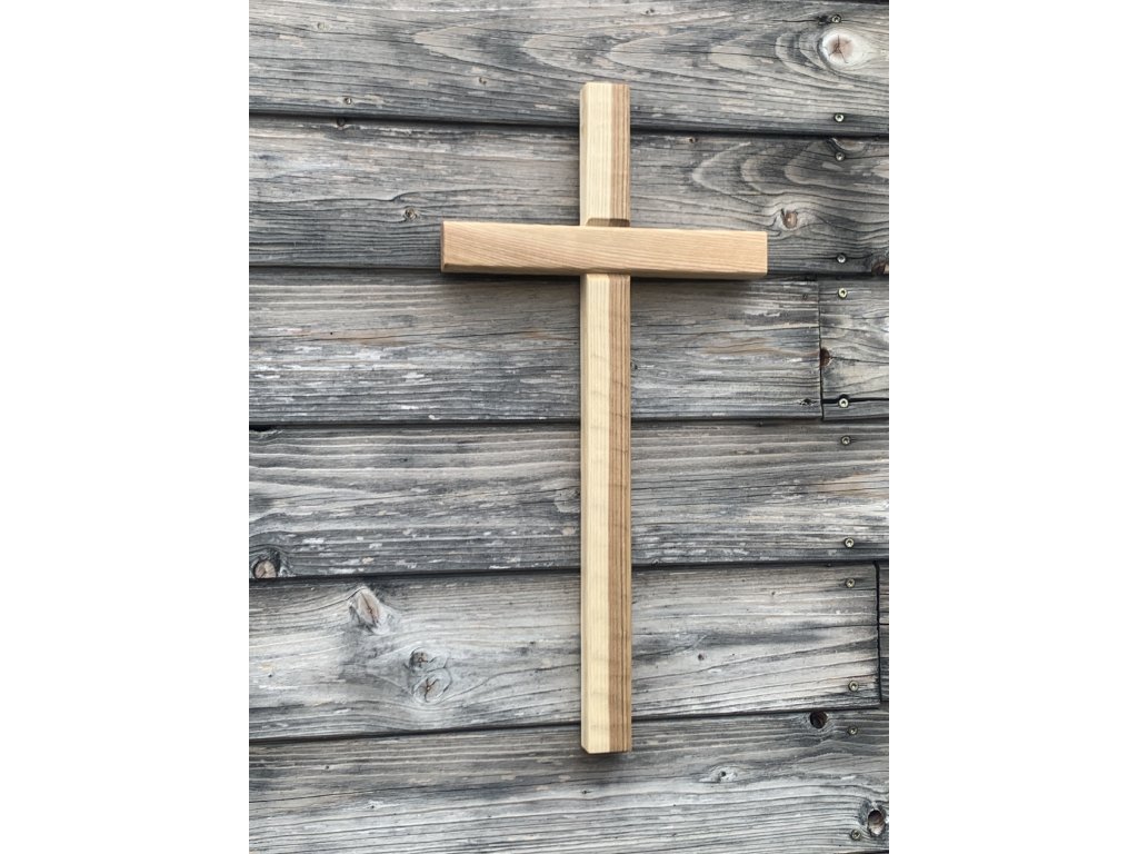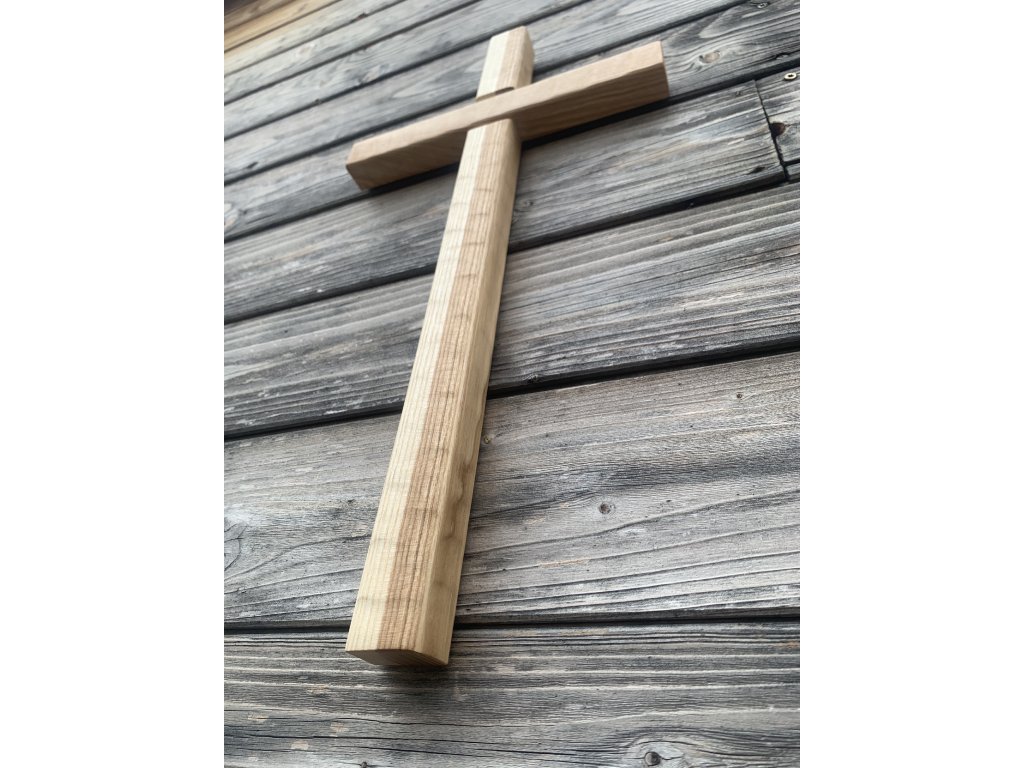 Ručně vyrobený kříž k zavěšení z Jasanového dřeva s vrypy ošetřený voskem Osmo- Přírodní vzhled.