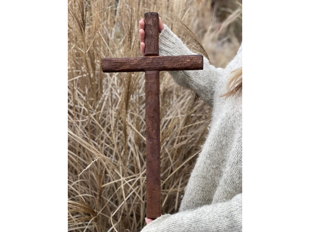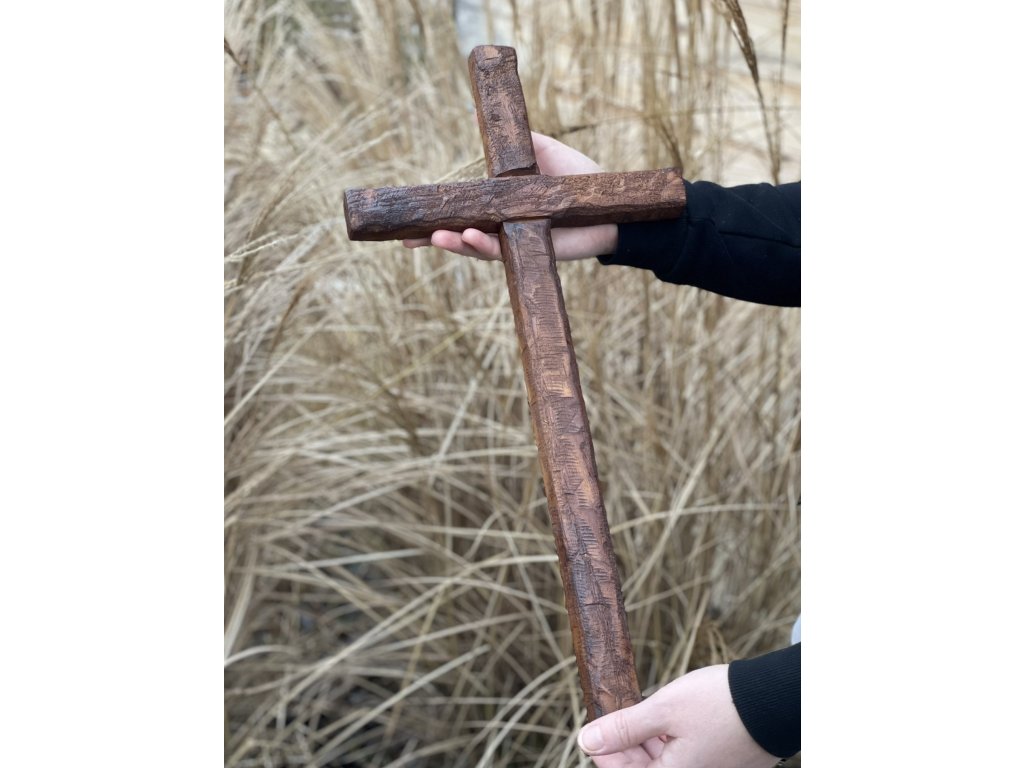 Kříž k zavěšení hrubě opracovaný - tmavě hnědý