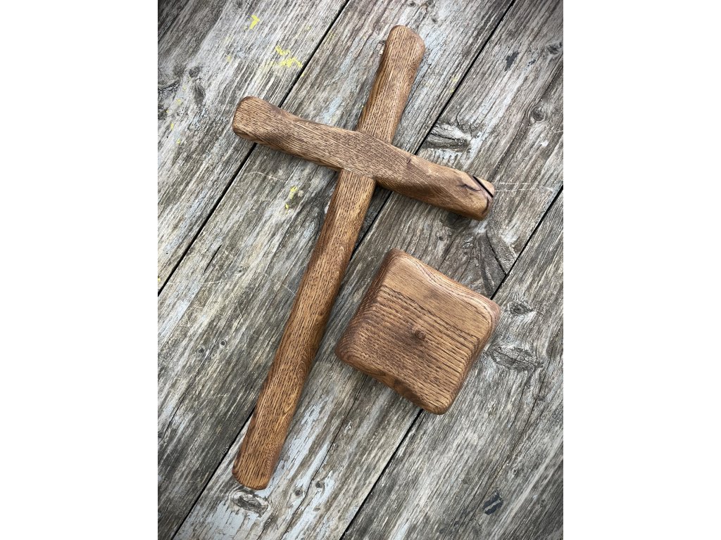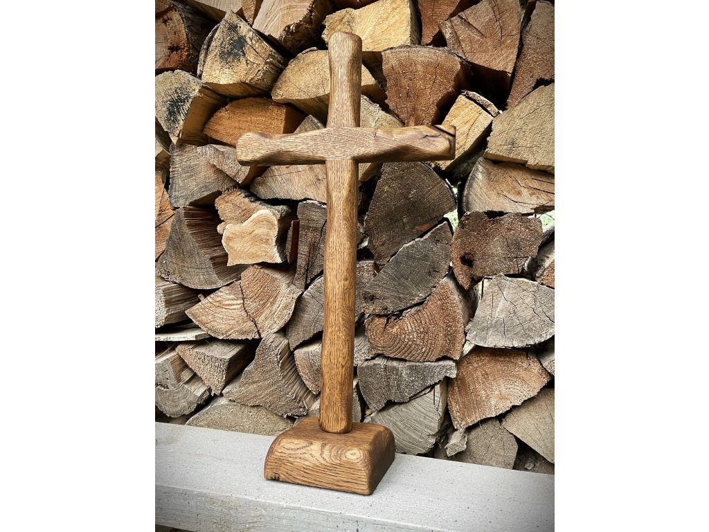 Kříž je možné od podstavce jednoduše oddělit a zavěsit.