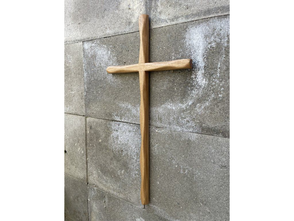 Dubový ručně broušený kříž k zavěšení.