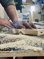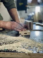 Naše produkty nevznikají na pásu. Vybíráme kvalitní masivní dřevo, každý spoj ladíme do detailu a každý povrch pečlivě opracováváme tak, aby vydržel roky používání i pohledů. Od prvního řezu až po finální broušení je za každým výrobkem skutečný člověk.