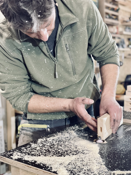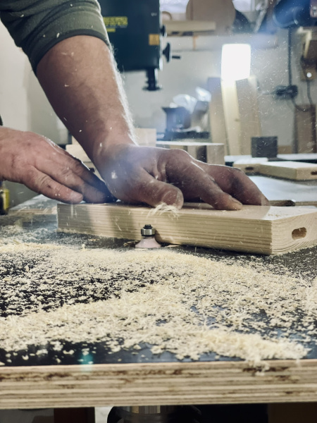 K tvorbě nás přivedla stavba vlastního domu. Při práci rukama jsme objevili radost z řemesla a když byl dům hotový, chtěli jsme mu dát duši. Začali jsme vyrábět vlastní dřevěné kousky. První byla kuchyňská prkénka pro rodinu, která měla nečekaně velký úspěch. A tak vznikl náš e-shop.