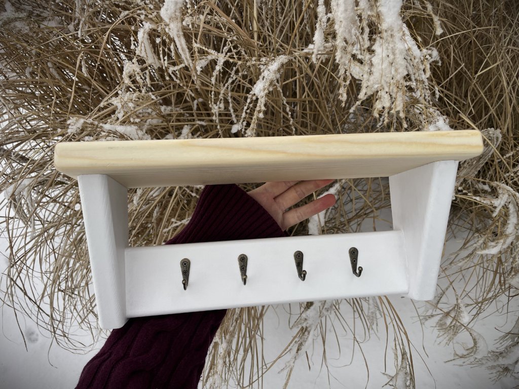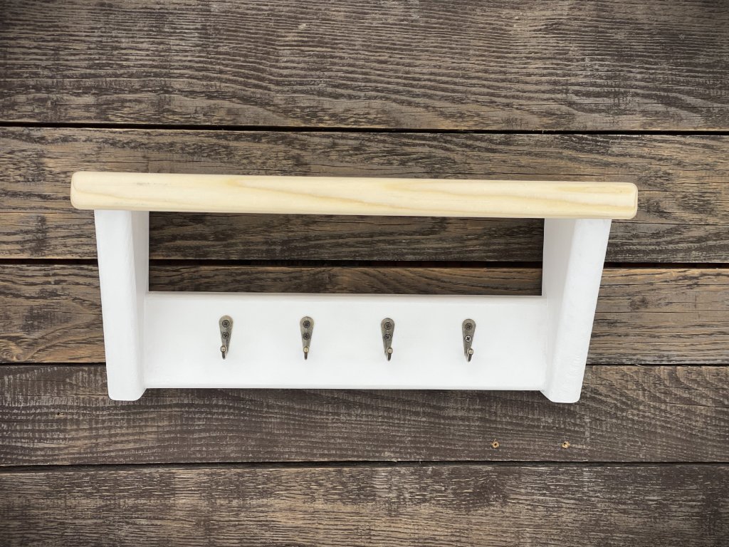 Smrková police se čtyřmi kovovými háčky