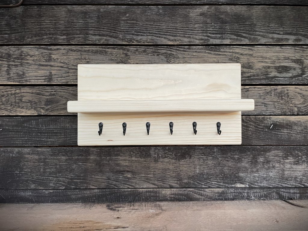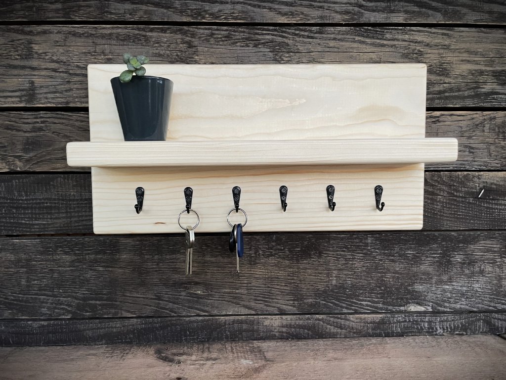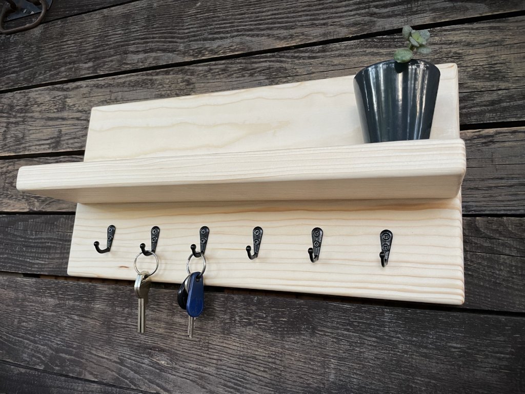 Vybavena 6 černými háčky pro klíče či drobnosti.