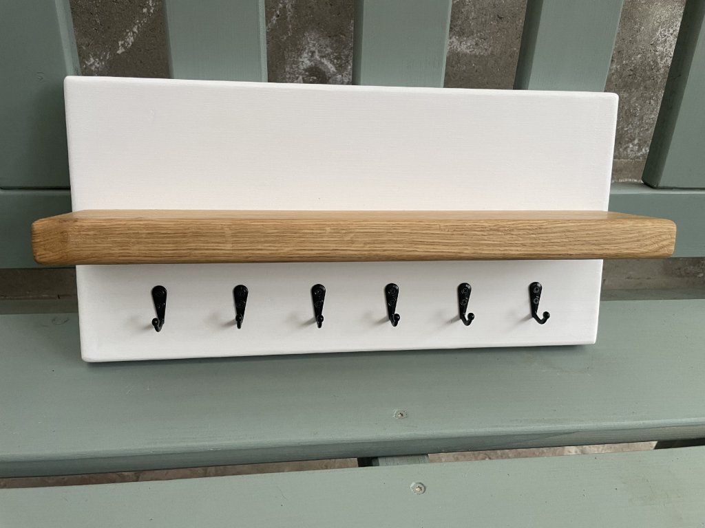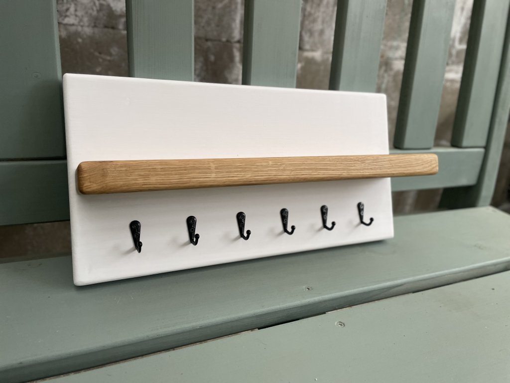 Smrkovo - dubová polička s šesti kovovými háčky.