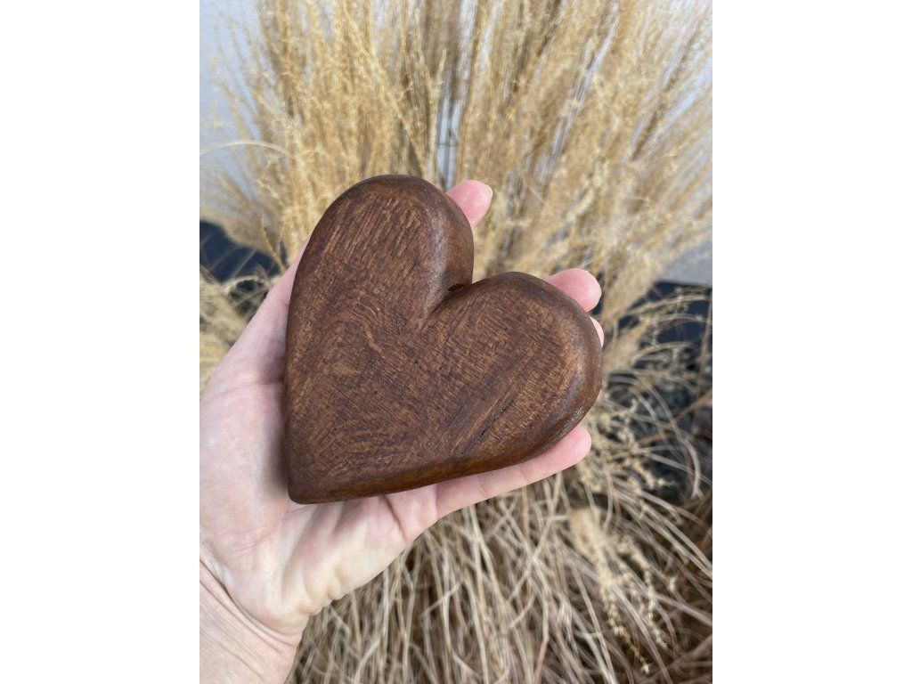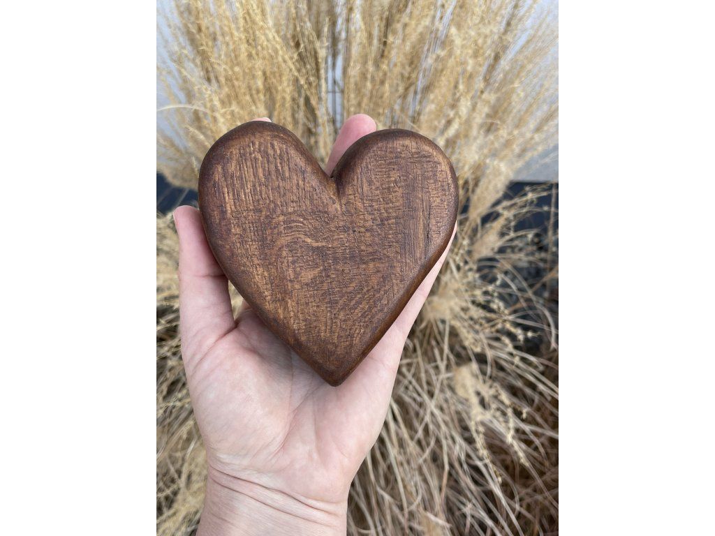 Dubové srdce v hnědé barvě volně stojící.