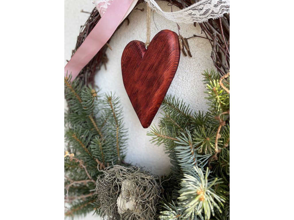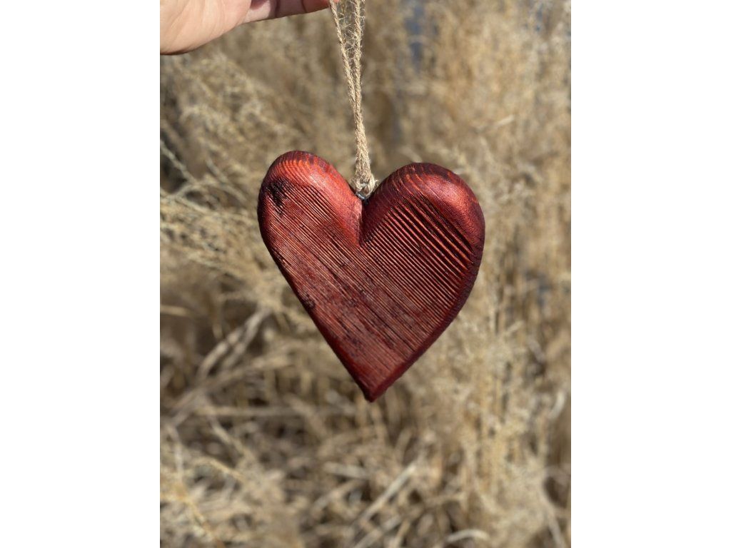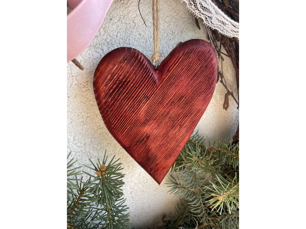 Srdce k zavěšení z borovice s vrypy.