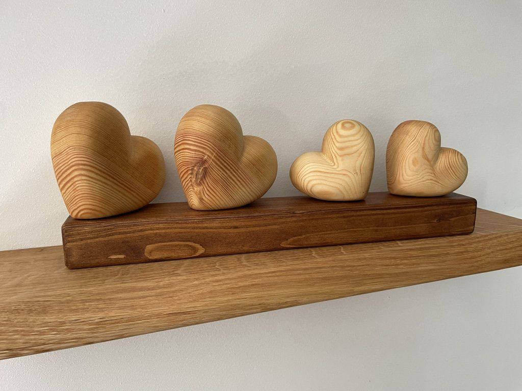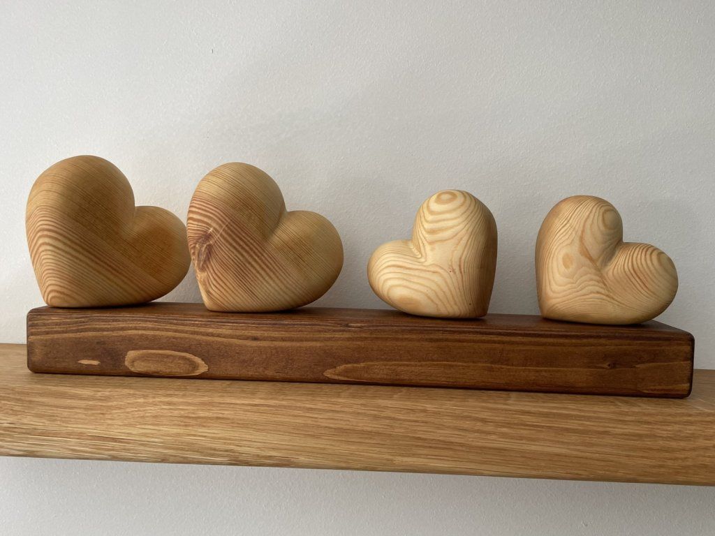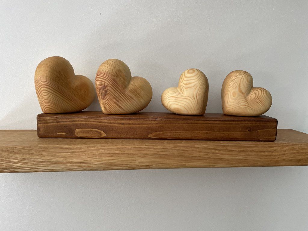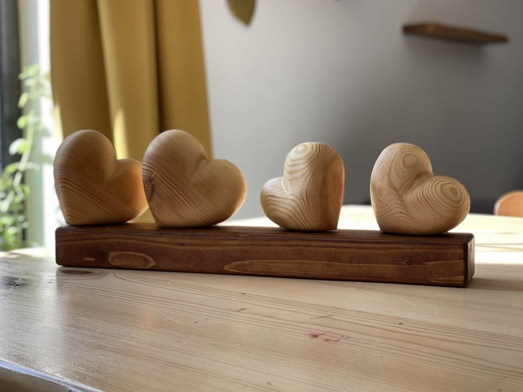 Dřevěné srdce – symbol rodiny ❤️ - Čtyři srdíčka na podstavci