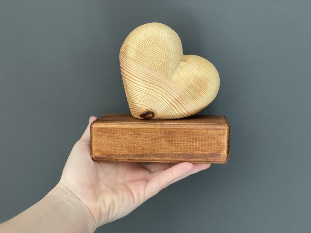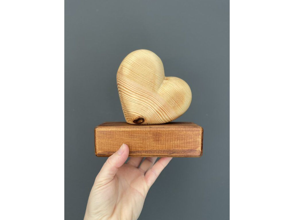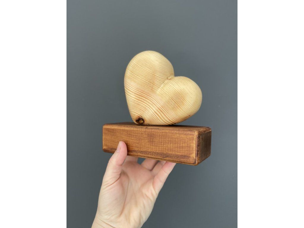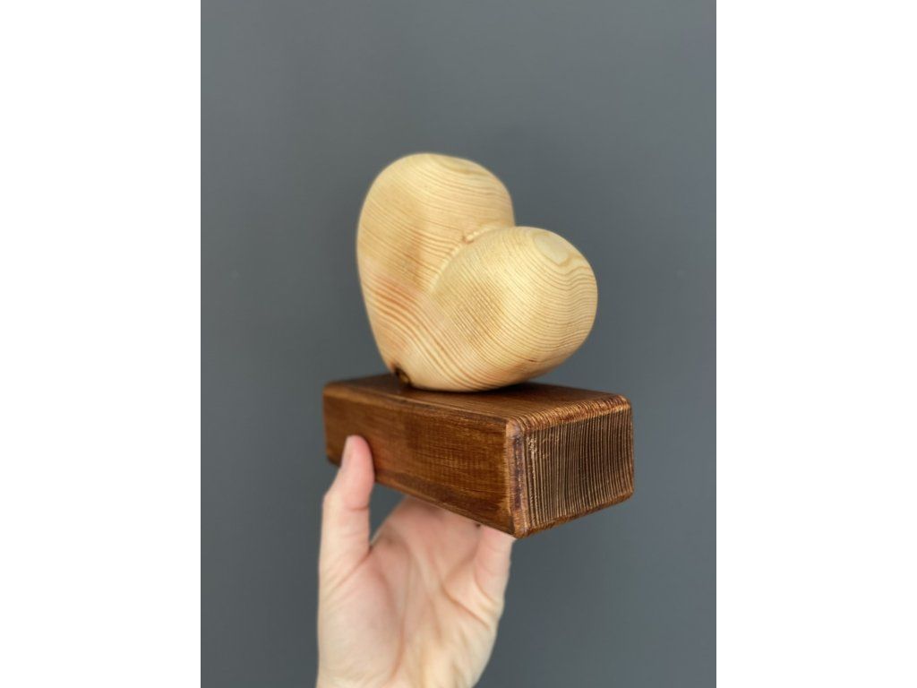 Srdce a podstavec z borovice. Srdce je ošetřené olejem a včelím voskem a podstavec hnědou barvou.