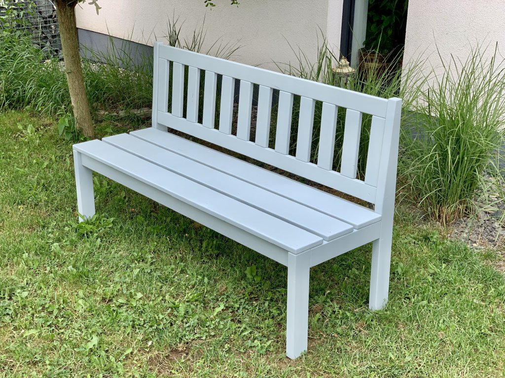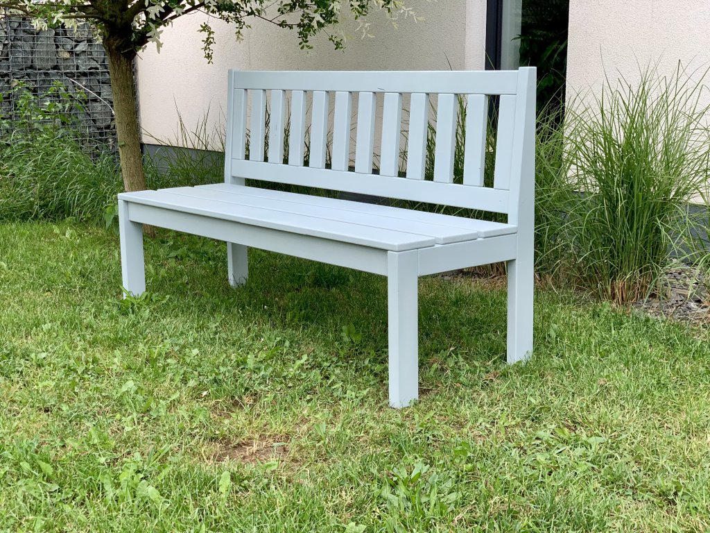 Lavička ze smrkového dřeva v pastelově šedé barvě